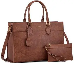 LOVEVOOK Laptop Bag for Women, Waterproof Leather Laptop Tote Bag, Large Professional Work Bag Purse & Business Computer Briefcase for Office, Teacher, Gifts, Vintage Brown