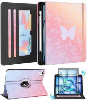 Kidcube for iPad Air 11 Inch Case M3/M2, Air 5th/4th Generation Cases 10.9'', Pro 11'' 2020 - Women Girls Aesthetic Cute Rotating Stand Folio Cover with Pencil Holder & Card Slot Kawaii Butterfly