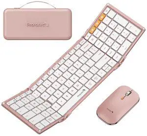 ProtoArc Foldable Keyboard and Mouse, XKM01 True Full-Size Folding Wireless Keyboard Mouse Combo for Business Travel, a Portable Office Suite On-The-Go, Compatible with Laptop iPad Tablet - Pink