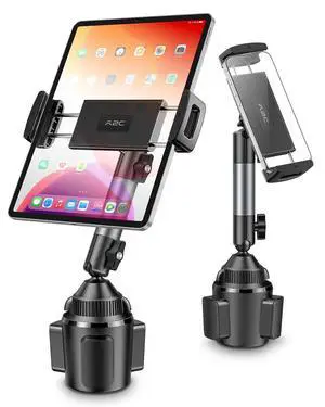 A2C Heavy-Duty iPad Holder for Car Cup Holder, 5.5" Stable & Adjustable Aluminum Alloy Arm, Tablet Mount for Car Truck Road Trip Essentials Compatible with 4.7"-13" Cell Phones & Tablets