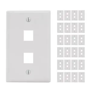 ICC 2-Port Keystone Wall Plate (25 Pack), UL Listed, Durable ABS Plastic, Single Gang Wall Plate for RJ45 Modular Jack and Inserts, White
