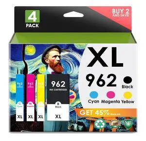Ink Cartridges HP 962XL. Works with OfficeJet Pro 9028 9029 9010 9015 9018 9025 9020 9012 9026 9027 Printers. 4 Pack 962 (Black, Cyan, Magenta, Yellow)