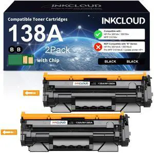 INKCLOUD 138A Black Toner Cartridge with Chip Compatible Replacement for HP 138A W1380A 138X W1380X Work for HP Pro 3001dw MFP 3101fdw 3001fdw Printer (2 Pack Black)