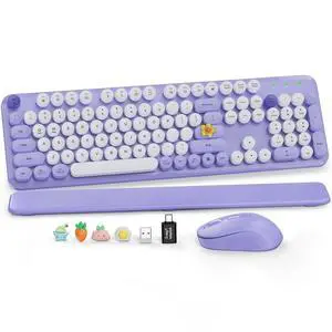 Wireless Keyboard and Mouse Combo - Cute Colorful Keyboard and Mouse, Retro Typewriter Keyboard with 2.4GHz Plug & Play, for Windows 11/10/7, Laptop, PC (Purple Wireless Keyboard and Mouse)