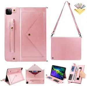 UUcovers Crossbody Handbag Case for iPad Pro 11 inch M4 2024 (Model: A2836 A2837 A3006) with Pencil Holder/Shoulder Strap/Hand Strap/Pockets, Stand PU Leather Carrying Magnetic Wallet Cover, Rosegold