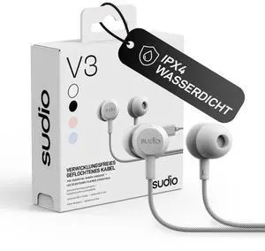 Sudio V3 Essential Wired Earbuds ^^ in Ear Headphones with Cable and USB-C Connector ^^ Tangle-Resistant Braided Cable ^^ Built-in Microphone ^^ IPX4 Water Resistant ^^ No Charging Needed ^^ (White)