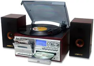 Vintage Vinyl Record Player with Stereo Speakers, 3-Speed Belt Drive Bluetooth Turntable, USB to PC Recording, LCD Display, Auto Stop, RCA Line Out, AUX, Headphone Jack, Walnut Wood, Home Decor, Gift