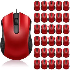 Bonuci 30 Pack USB Wired Mouse 3 Button Corded Computer Mice Bulk USB Mouse for PC Desktop, Laptop, Office, School, Classroom Use(Red)
