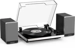 Viny Record Player with 2 External Speakers and 2 Bluetooth Modes,Turntable with ATN-3600 Stylus,Pitch,USB Recording,RCA and AUTO Stop for Vinyl Records