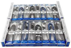 Unicorn Trade 50 Packs Supreme USB-C to USB-C Charging Cable for iPhone Series 15 and Android Phones USB Type C Braided Data Cables 3.3 ft / 1m Bulk Wholesale Lot, Black, Grey, Silver, Blue