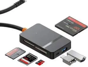 High-Speed 8-in-1 USB 3.0/USB-C OTG Card Reader - 104MB/s CF/SD/TF/MS Adapter with Dual Ports & LED ^^ Mac/PC/Android