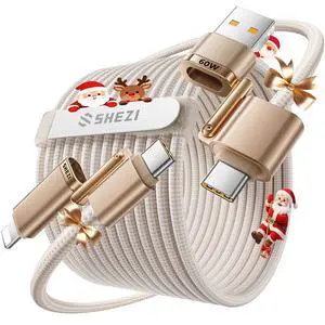 4 in 1 USB C Cable 6FT 2M Beaded Multi Charging Cable [MFi Certified] Pearl iPhone Charger Cord USB A/Type C to Type C/iPhone Multi Fast Charger Cable for iPhone 17 16 15 14 Pro Max for Galaxy S25 S24