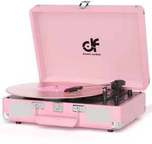 Vinyl Record Player 3-Speed Portable Suitcase Turntable with Built-in Speakers, Bluetooth Playbaack, Vinyl to MP3 Conveter, USB Recording, RCA, AUX & Headphone Output Pink