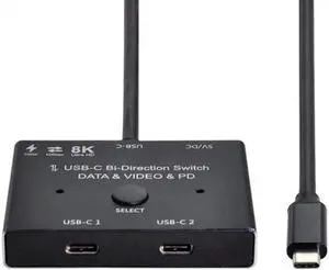 USB-C Type-C Bi-Direction Switch MST 1 to 2 Hub Support Video Data PD 8K@30hz 100W 10Gbps