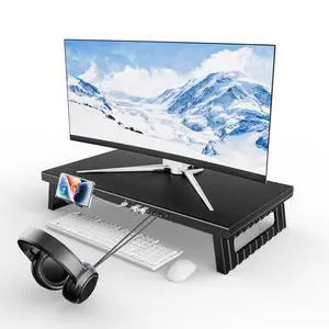 GECKOSTROLL All-Metal Foldable Monitor Stand with 28cm Wide Desktop,, Headphone & Mic Jack, Detachable Phone Holder, (USB Hub Fast Charging Version, 530mm)