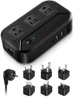 Voltage Converter US to Europe with 4 USB + 3 AC Outlets, 2300W Power Converter European Travel Plug Adapter for EU/UK/Italy/Asia/India/South Africa/Australia