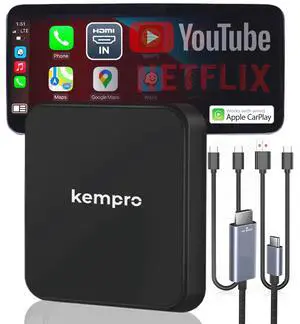 KemPro HDMI Wireless CarPlay Adapter HDMI in for Watch Fire TV Stick, Switch & iPhone on Car Screen 2-in-1 Video Dongle for OEM Wired CarPlay USB A & C