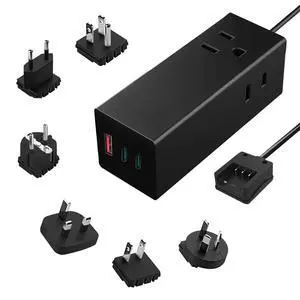 Ceptics 65W World Travel Adapter 3 USB Ports PD 3.0 Ultra Compact Charger 2 US Outlets [GaN Tech], Quick Type C, Charge Laptops, Cellphones in Europe, Asia, Africa, America and More