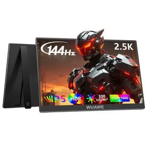 WUAWE Portable Monitor 16" 16:10 IPS Travel Monitor for Laptop, 100% sRGB Control USB-C HDMI,HDR Freesync Display, Plug&Play for Phone PS5 Switch (2.5K^^144HZ, Black, 16inch)