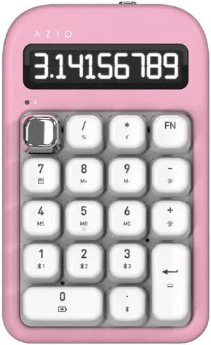 AZIO IZO Wireless Mechanical Calculator & Number Pad (Pink/Silver) - Bluetooth 5.0 & USB, Gateron-Red Mechanical Switch, 9 Backlight Modes, Rechargeable, PC & Mac Compatible, Pink Blossom (IN408)