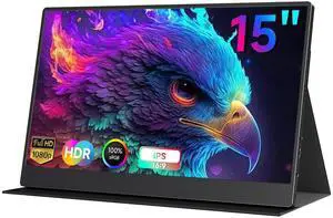 AYY Portable Monitor 15 Inch 1080P FHD 100% sRGB, USB-C HDMI External Display, HDR IPS Ultra-Slim Second Screen for Laptop PC Mac Phone PS5/4 Xbox Switch, Bulit-in Speakers, with Smart Cover