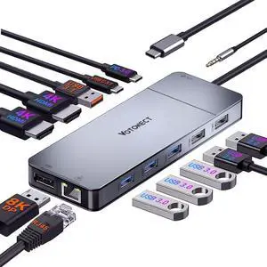 Votonect USB C Hub USB C Docking Station 13-in-1 Adapter with Dual 4K HDMI & 8K DP Output USB3.0 x3, USB3.1 x1, USB2.0 x2, PD100W, Gigabit Ethernet, 3.5mm Audio for MacBook, Dell, HP, Surface