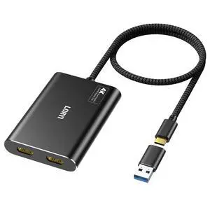 Loryi DisplayLink USB/USB-C to Dual HDMI Adapter 4K@60Hz HDMI Splitter for M1/M2/M3 Mac,Supports Extended Mode, Multiple Monitor Compatible with Windows,Mac OS Driver Required