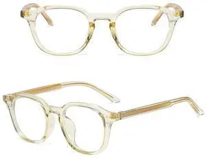BETSION Anti Blue Light Blocking Glasses Vintage Acetate Square Eyeglass Frames Light Full Rim Unisex Computer Eyeglasses (Yellow)