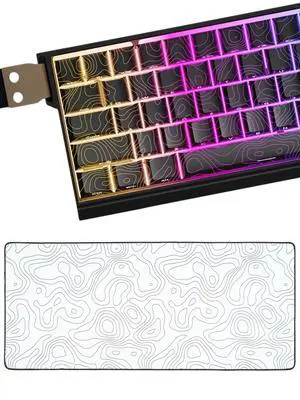 PBT keycaps,Black Topographic keycaps 60 75 Percent,Lines Backlit,Shine Through keycaps Bundle with White Topographic Mouse pad(35.4x15.7in)