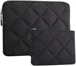 LANDICI Puffy Laptop Sleeve Carrying Case 14 15 Inch Compatible with MacBook Pro 14/15, MacBook Air M2 15, Surface Laptop 4/5, Chromebook 14, Cute Computer Cover Bag with Accessories Pouch, Black