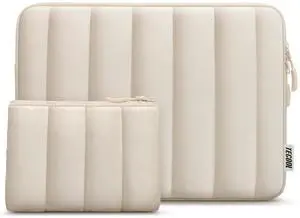 TECOOL Puffy Laptop Case 13.3 inch,13-13.3 inch Laptop Sleeve for MacBook Air 13 13.6 inch M4 M3 M2 M1,MacBook Pro 13/ Mac Pro 14,13.3" HP Lenovo Dell Waterproof Notebook Sleeve with Small Case,Beige