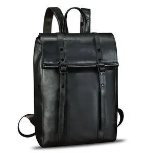 IVTG Genuine Leather Backpack for Men Vintage Handmade Leather Rucksack Knapsack Purse Daypack for Travel Laptop Notebook (Black)