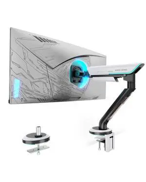 ARES WING Single Monitor Mount, Heavy-Duty Gaming Monitor Arm fits for 24"-57" Ultrawide Screen, Adjustable Computer Monitor Stand Holds Up to 60LBS with VESA Mount, Clamp & Grommet, White