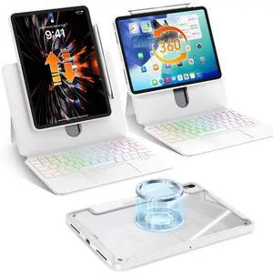 Intermerge Wireless Keyboard Case for iPad/Tablet - 360 Swivel Multi-Touch Trackpad, 7-Color RGB Backlit Keys, Pencil Holder, Power Indicator_LYJP1001_Pro 13_White