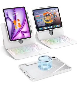 Intermerge Wireless Keyboard Case for iPad/Tablet - 360 Swivel Multi-Touch Trackpad, 7-Color RGB Backlit Keys, Pencil Holder, Power Indicator_LYJP1001_Air 13_White