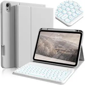 BQDIYOO Keyboard for iPad Air 11-inch M4/M3/M2 (2026/2025/2024), iPad Air 7th/6th 11" Air 5th/4th Gen 10.9 inch 2022/2020 White Round Key case with Wireless Backlight Keyboard Case, Gray