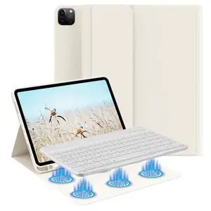 KTGGHG Keyboard Case for Pro 11-Inch 4th/3rd/2nd Generation(2022/2021/2020) with Pencil Holder, Wireless Detachable Magnetic Folio Bluetooth Keyboard Cover, Lightweight & Auto Wake/Sleep, White Cream