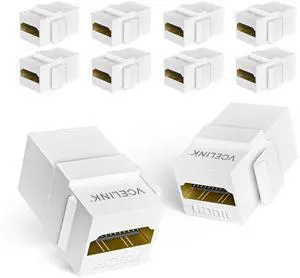 VCELINK 10-Pack 8K HDMI Keystone Jack with 8K 60Hz and 4K 120Hz, HDMI 2.1 Female to Female Adapter 48 Gbps, Snap-in 180 Degree Angle Connector for Wall Plate, Gold Plated, White