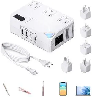 Travel Voltage Converter Step Down, 250W International Power Adapter for Hair Straightener/Curling Iron, Including UK/US/EU/AU/IT/India Universal Plug Adapter (Off-White)