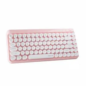 FCPLU x UBOTIE Wireless Bluetooth TKL Keyboard with 84 Retro Round Keycaps, Typewriter-Style, for PC/Mac/Tablets(White Pink)