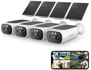 2K Solar Security Cameras Wireless Outdoor-2.4/5Ghz WiFi Cameras for Home Security, AI Motion Detection, Color Night Vision, SD Card/Cloud Storage, Waterproof, Work with Alexa/Google Home (4 Cameras)