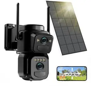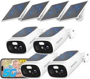 4pc 2.4G/5G WiFi Cameras for Home Security with Double Solar Panels, 2K Solar Security Cameras Wireless Outdoor, Color Night Vision , 2-Way Talk, Spotlight, Siren,IP66, Cloud/SD, AI Detection, W/Alexa