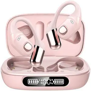 2B2C Open Ear Earbuds, Bluetooth 5.3 Wireless Air Conduction Headphones with Mic, LED Display Charging Case&Fast Charging, Ultra-Light Weight, 80H Playtime Earbuds for Work, Sports (Pink)