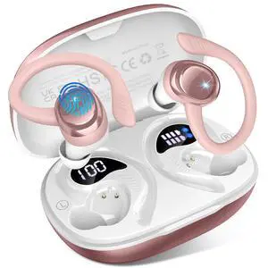 Hupoaf Wireless Earbuds Sport, New Bluetooth 5.4 Headphones with Earhooks, 50H Stereo Deep Bass Over Ear Buds with 4 ENC Noise Canceling Mics, IP7 Waterproof Earphones for Running Workout Gym -Rose