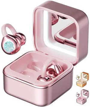 Clip on Earbuds Open Ear Wireless Bluetooth 6.0 Headphones with Mic, 40hrs, AI-ENC, IPX5 Waterproof, Sports Ear Buds, Portable Fill Light & Makeup Mirror for Running Small Ears, Workout& Fitness
