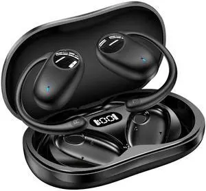 kurdene Open Ear Headphones,Bluetooth 5.3 Wireless Sports Earbuds with Digital Display Charging Case, 60Hrs Playtime Earphones with Earhooks for Running,Meeting,Workout