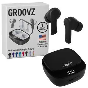 Groovz True Wireless Earbuds with Charging Case - Designed and Engineered in The USA - IPx4 Water Resistant Bluetooth Earbuds Compatible with Apple and Android - 27Hrs Battery Life - Black
