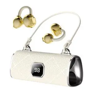 JIECAN Open Ear Headphones Bluetooth V5.3 Wireless Earbuds with Earhooks with Digital Display Charging Case, Conduction Headphones with Mic Waterproof Sport Earbuds for Running (White)
