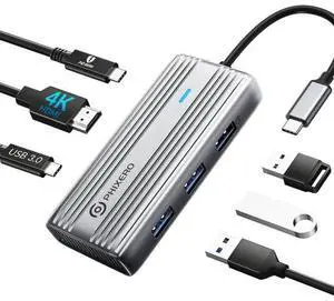 PHIXERO 6-in-1 USB C Hub Multiport Adapter, 4K Type c Hub HDMI, Dongle with 4K HDMI, 100W PD Charging, USB-C and 3 USB-A 5Gbps Data Port, for MacBook Pro/Air, iPad Pro. Laptop Docking Station.