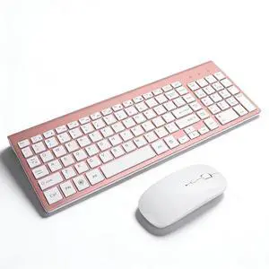 Keyboard and Mouse Combo, Ultra Thin Silent 102 Keys, Ergonomic Design with USB Adapter, for Desktop Computers, Mobile Devices, Tablet PCs (Rose Gold)